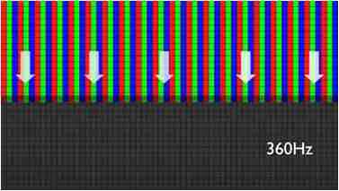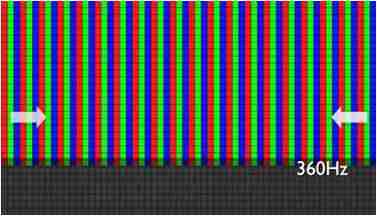 传统液晶驱动是从左到右单向进行,,,,在画面更新速度愈来越愈快的情况下,,位于驱动线路末端的右下角区域,,,画素的闸极来不及在短时间内获得足够电压,,,无法显示出正确的颜色资讯。。。。