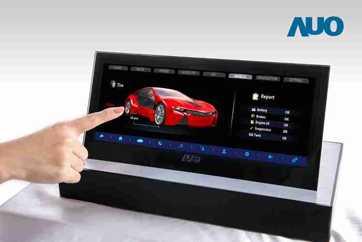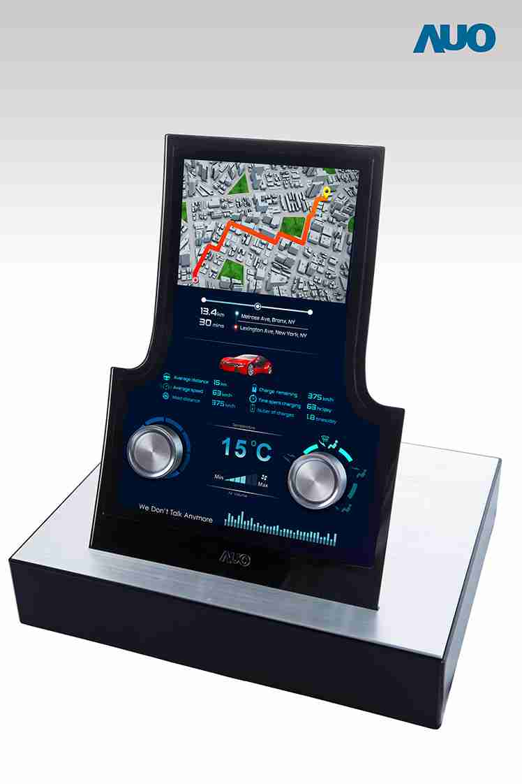 12.3 寸 Full HD LTPS 显示屏同样具备 1000 nits 高亮度,,,搭载内嵌式触控技术,,整合驱动与触控 IC 于显示屏制程,,,,使显示屏厚度降低,,为中控台创造更多机构设计空间。。。应用于抬头显示器的 3寸 LTPS 显示屏具有高穿透率、、、、1200:1 高对比度度,,,以及 297 PPI 高画素密度。。液晶最高可耐受到 110C 的高温 (TNI) 而不液化,,,,在阳光高温下维持优异稳定的显示效果。。。。