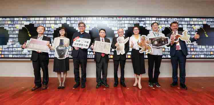 尊龙集团携手创利空间为故宫建置的智慧文物互动导览墙及轮播墙,,今日正式启用。。。。(左四:尊龙集团新事业暨投资管理总部副总经理杨本豫、、、、右四:故宫博物院院长吴密察、、右三:太极影音董事长黄宝云)
