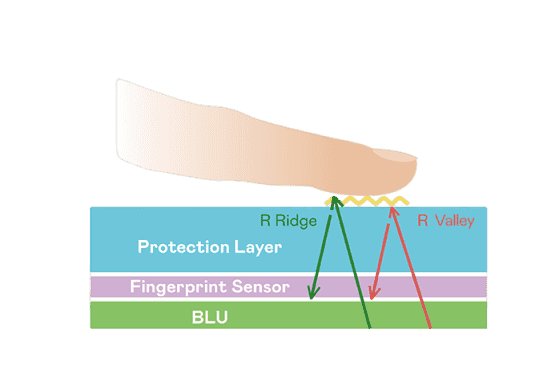 大面积 TFT 光感测超高像素密度光学感测技术能精准判定手指反射的极微弱光讯号,,即使细致指纹也可清晰辨识,,并可透过手指脉搏造成的细微灰阶变化侦测心跳,,让身分验证更精确。。。TFT 架构优化可降低讯号传输干扰,,,达到光感测器最佳讯杂比(讯号/杂讯的比例)。。。透过增强光讯号接收强度、、优化感测器电路及导入特殊光学膜材料,,提高感测器敏度。。。整合系统之指纹扫描装置可符合最高等级的FBI国际安全规范认证需求。。